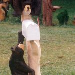 One of Lee’s specialties is bear carvings. For other bears, see furniture (benches, beds, etc.), wall hangings, and whatnots. Click on the image for a clearer, larger view.
